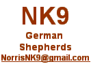 | © 2008-present. Any and all materials contained within this web-site are copyrighted by NorrisNK9 Shepherds. All rights reserved. Last update: March 29, 2021 |
